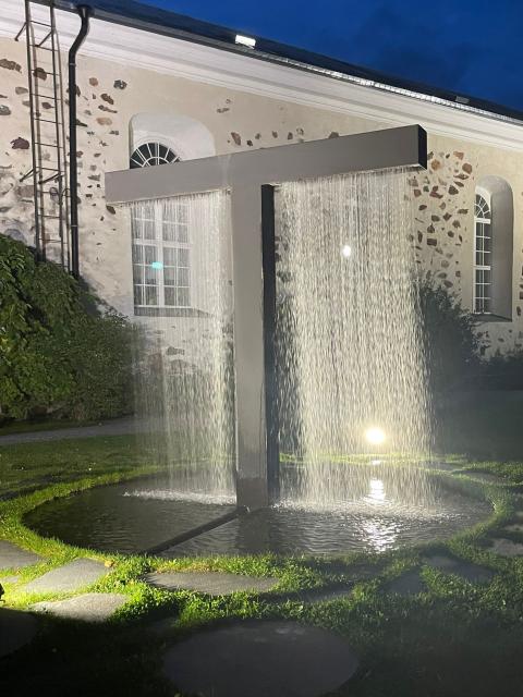 Taideteos Hopp (Toivo) on todella upea syksyn pimeinä iltoina. Kello 20–21 välillä syntyy erityisen kaunis vaikutelma, kun vesielementti valaistaan – hetki rauhaa ja kauneutta syksyn hämärässä.