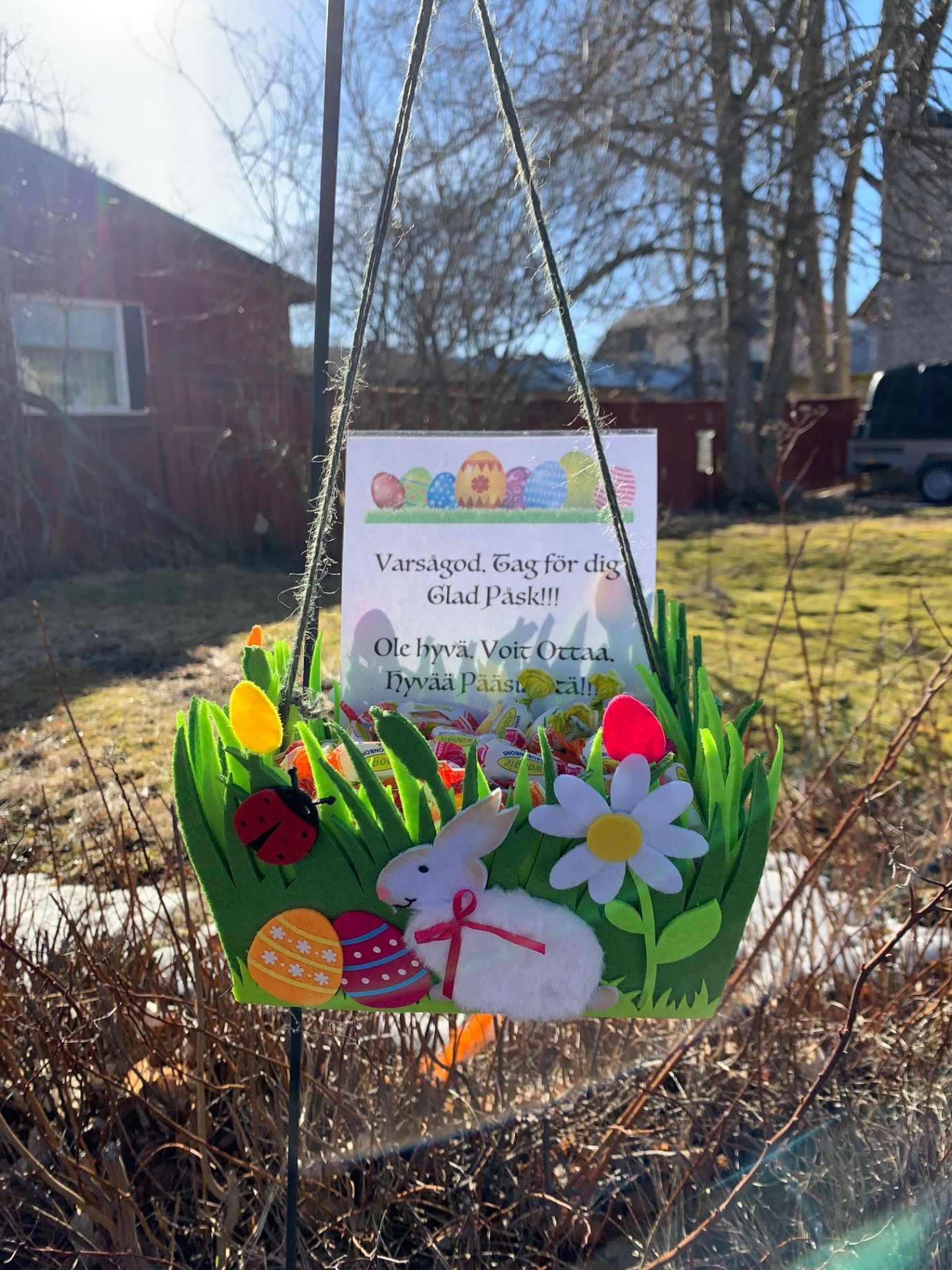 Påskharen i Gamla Stan har placerat ut 8 påskägg i Gamla stan i Ekenäs som du skall försöka hitta. Jakten startar från Basatorget i Gamla stan från den röda brevlådan. Påskharen har också gömt ett påskägg fyllt med godis någonstans i Gamla Stan. Kanske du hittar ägget?